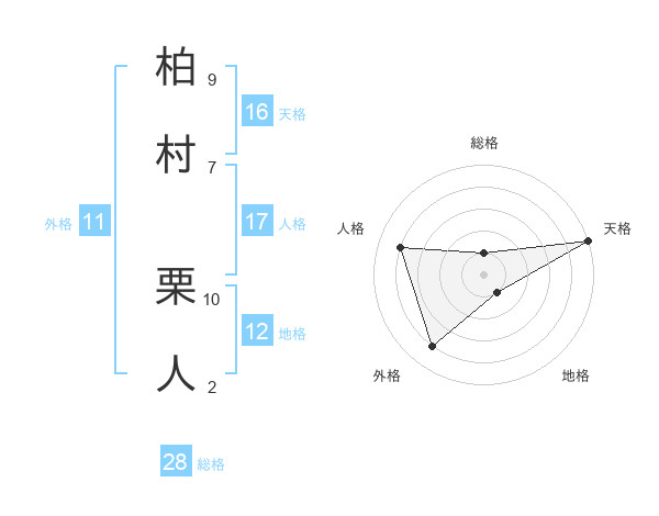 柏村 栗人さんの総格は28画の1点!
