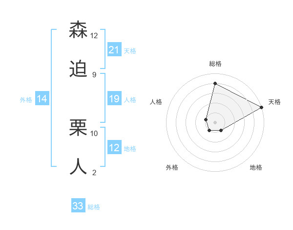 森迫 栗人さんの天格は21画の5点!
