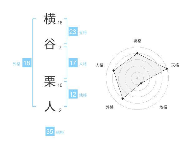 横谷 栗人さんの総格は35画の4点!