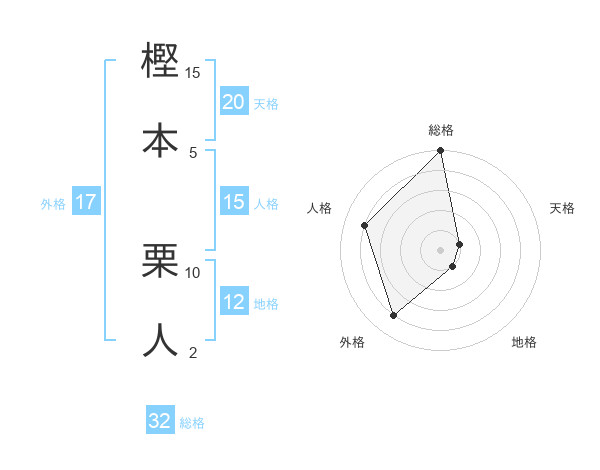 樫本 栗人さんを姓名の画数から五運を鑑定