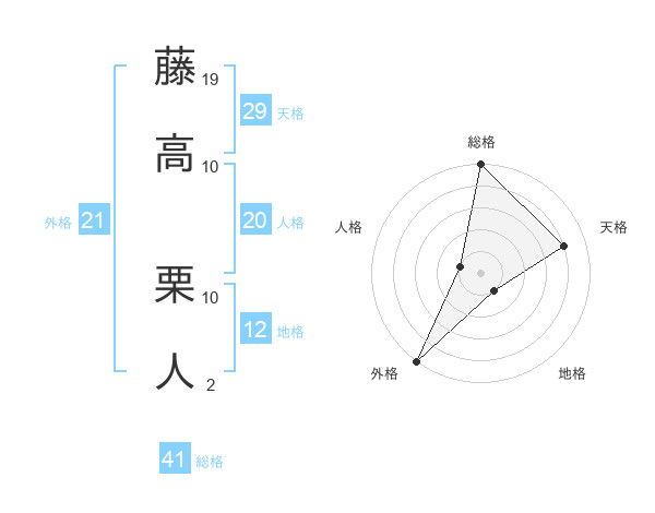 藤高 栗人さんの総格は41画の5点!
