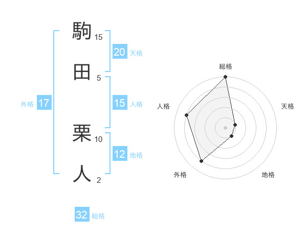 駒田 栗人さんの総格は32画の5点!