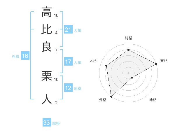 高比良 栗人さんを姓名の画数から五運を鑑定