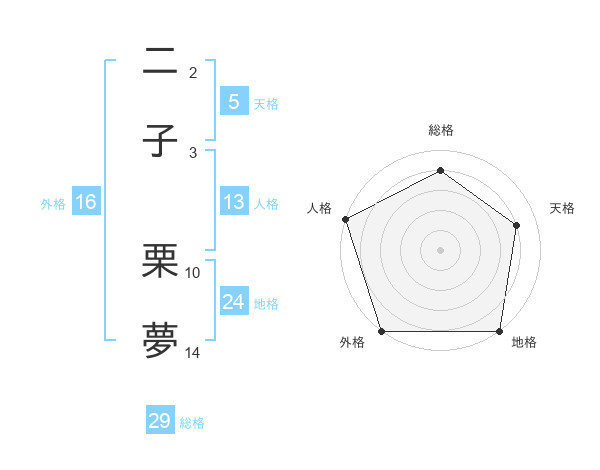 二子 栗夢さんの外格は16画の5点!