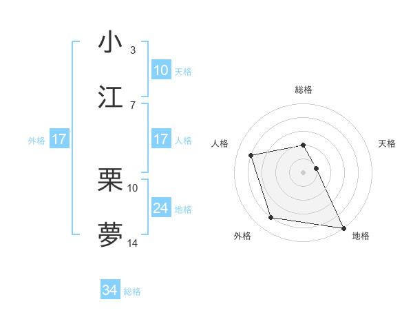 小江 栗夢さんの外格は17画の4点!