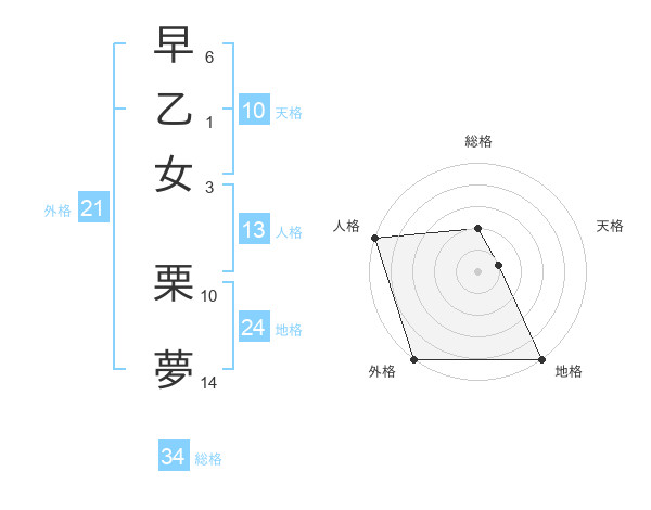 早乙女 栗夢さんを姓名の画数から五運を鑑定