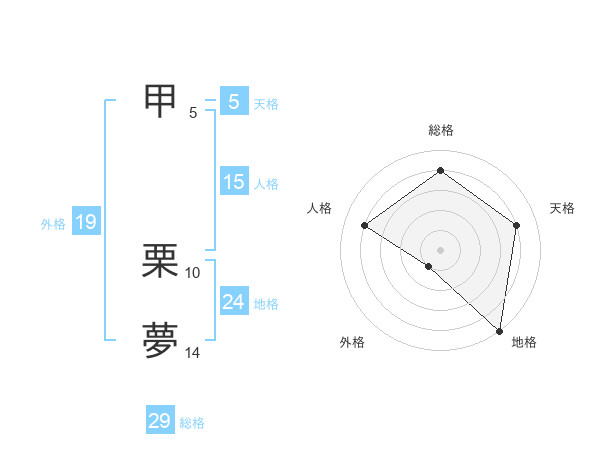 甲 栗夢さんの総格は29画の4点!