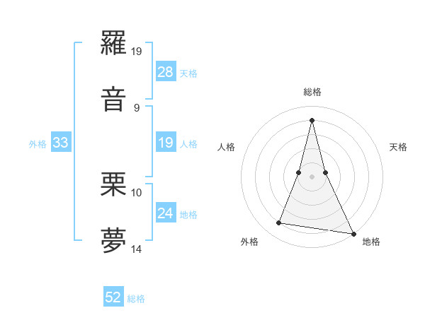 羅音 栗夢さんを姓名の画数から五運を鑑定