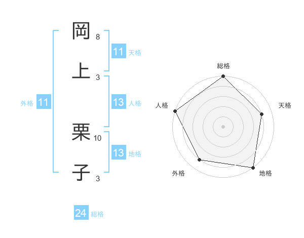 岡上 栗子さんを姓名の画数から五運を鑑定