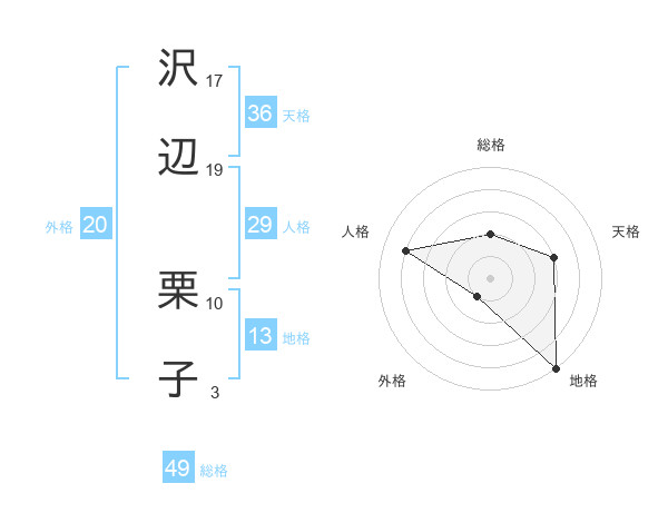 沢辺 栗子さんの総格は49画の2点!