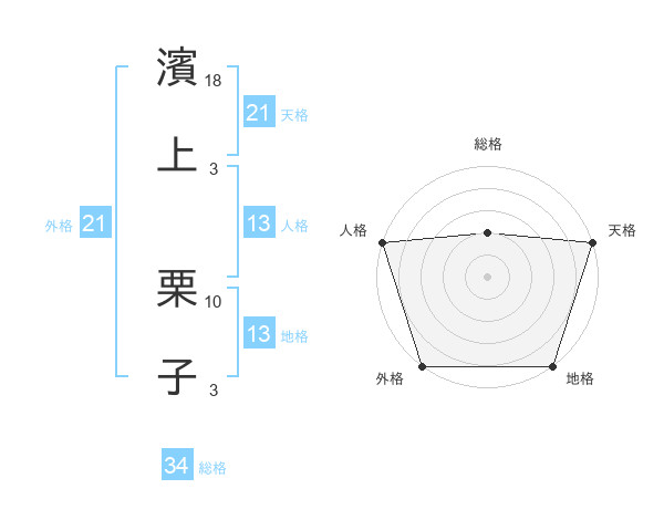 濱上 栗子さんの総格は34画の2点!