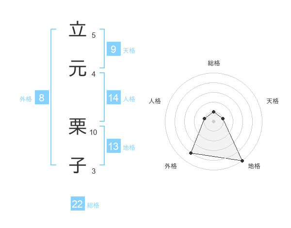 立元 栗子さんの総格は22画の1点!