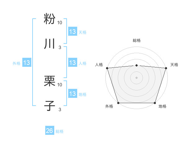 粉川 栗子さんの外格は13画の5点!