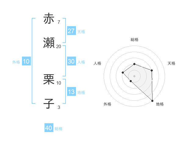 赤瀬 栗子さんの総格は40画の2点