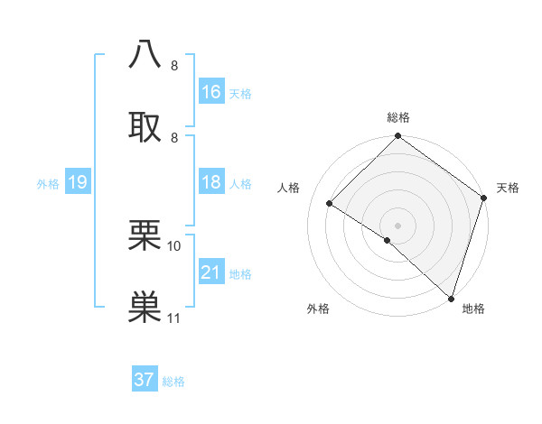 八取 栗巣さんを姓名の画数から五運を鑑定