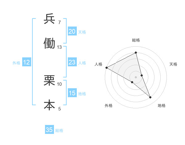 兵働 栗本さんの総格は35画の4点!