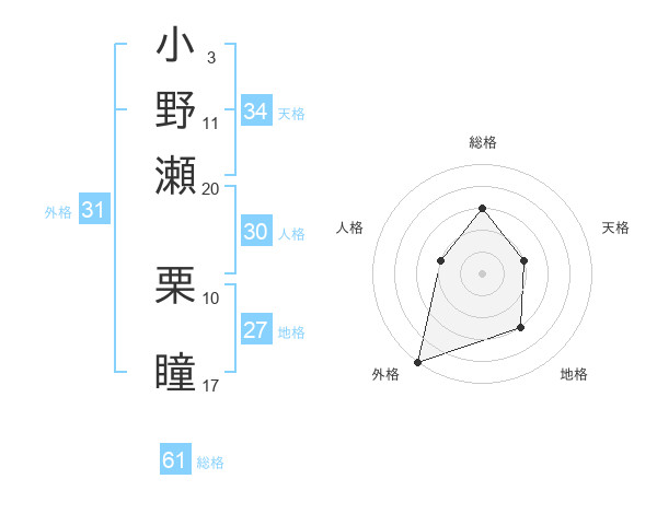 小野瀬 栗瞳さんを姓名の画数から五運を鑑定