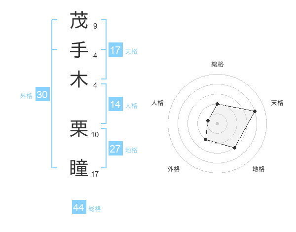 茂手木 栗瞳さんの天格は17画の4点!