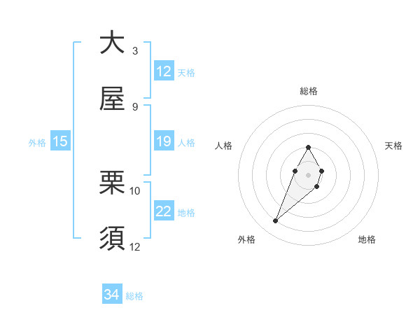 大屋 栗須さんの総格は34画の2点!