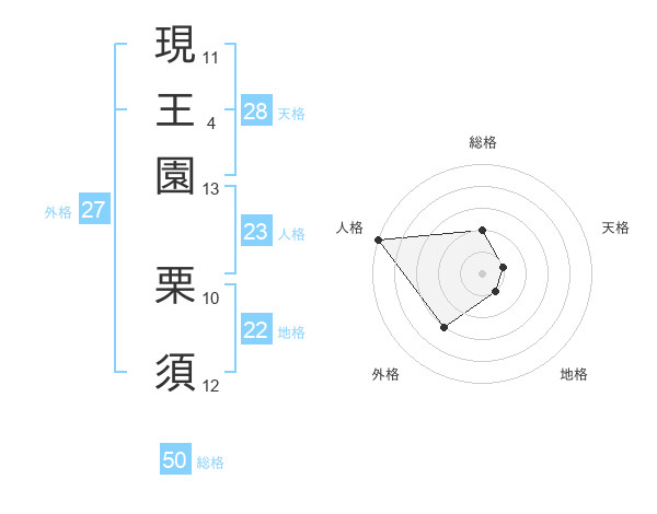 現王園 栗須さんを姓名の画数から五運を鑑定