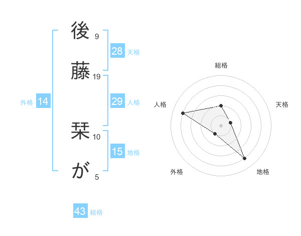 後藤 栞がさんを姓名の画数から五運を鑑定