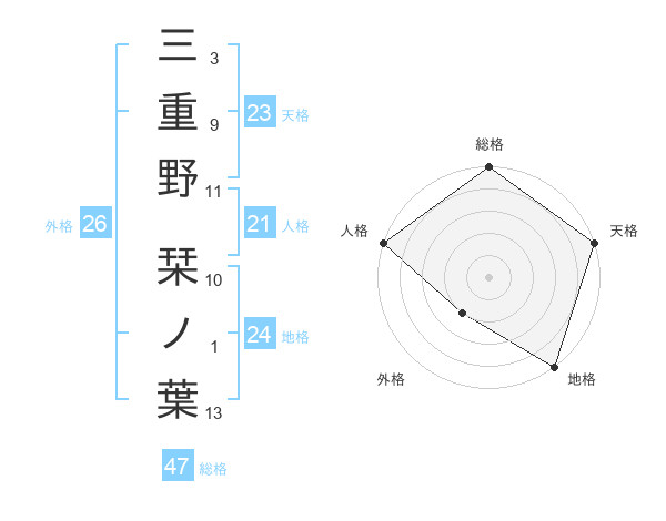 三重野 栞ノ葉さんを姓名の画数から五運を鑑定