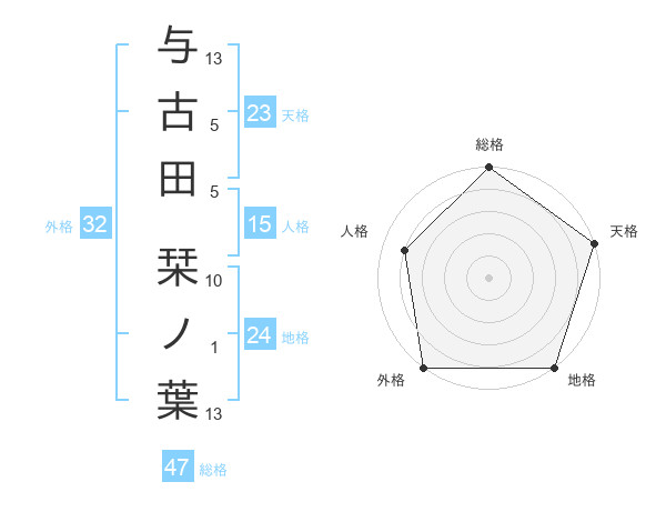 与古田 栞ノ葉さんを姓名の画数から五運を鑑定