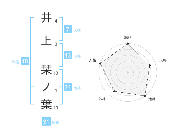 井上 栞ノ葉さんを姓名の画数から五運を鑑定