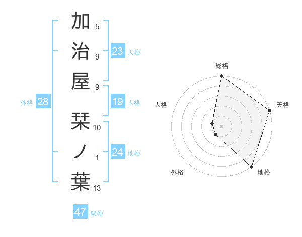 加治屋 栞ノ葉さんの天格は23画の5点!