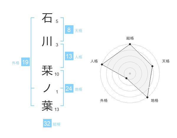 石川 栞ノ葉さんを姓名の画数から五運を鑑定