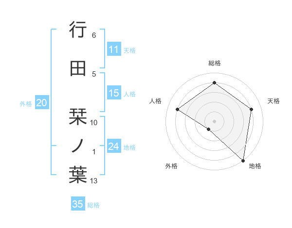 行田 栞ノ葉さんを姓名の画数から五運を鑑定