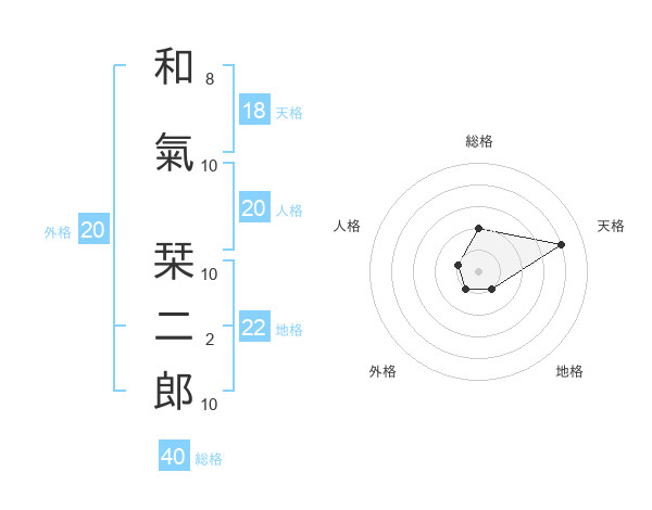 和氣 栞二郎さんを姓名の画数から五運を鑑定