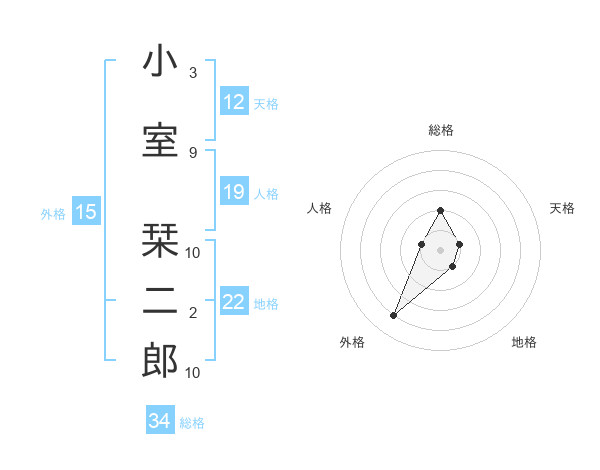 小室 栞二郎さんの総格は34画の2点!
