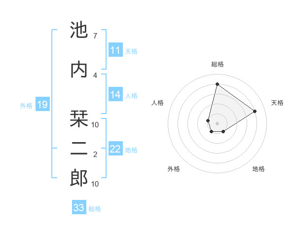 池内 栞二郎さんの総格は33画の4点!