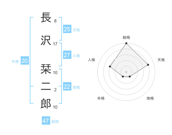 長沢 栞二郎さんを姓名の画数から五運を鑑定