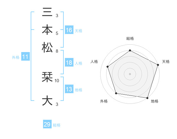三本松 栞大さんを姓名の画数から五運を鑑定