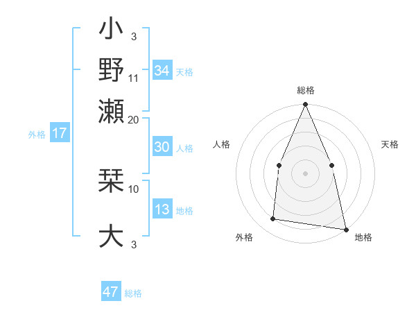 小野瀬 栞大さんを姓名の画数から五運を鑑定
