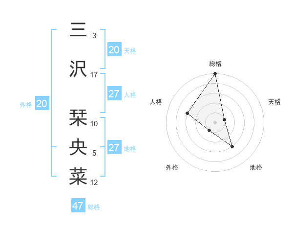 三沢 栞央菜さんの総格は47画の5点