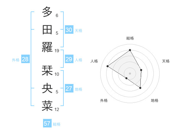 多田羅 栞央菜さんを姓名の画数から五運を鑑定