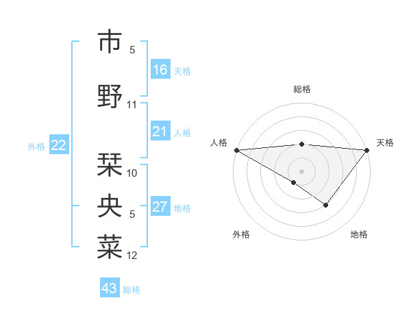 市野 栞央菜さんを姓名の画数から五運を鑑定