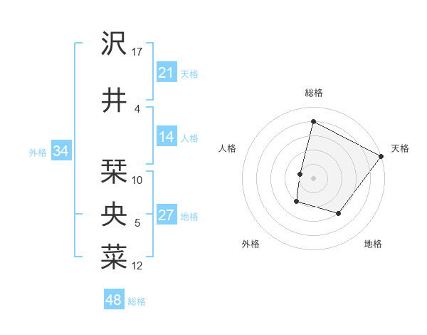 沢井 栞央菜さんを姓名の画数から五運を鑑定