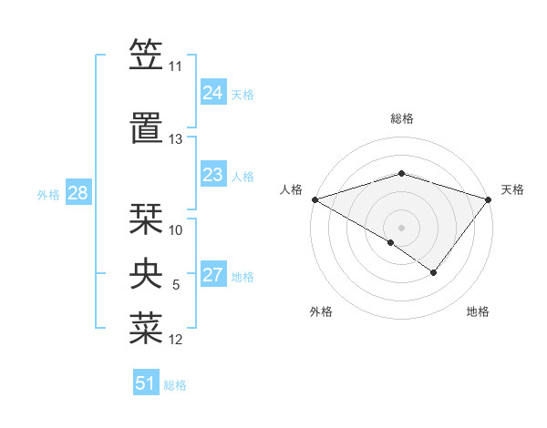 笠置 栞央菜さんを姓名の画数から五運を鑑定