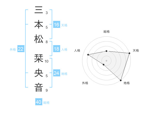 三本松 栞央音さんを姓名の画数から五運を鑑定