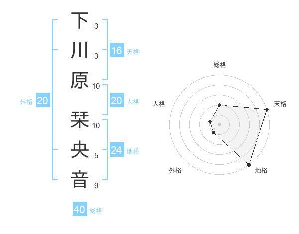 下川原 栞央音さんを姓名の画数から五運を鑑定