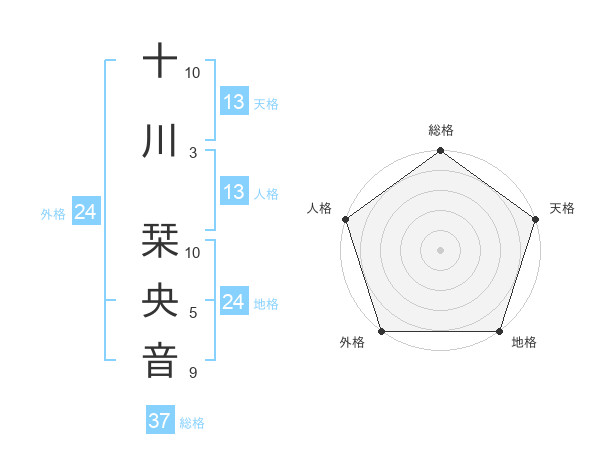 十川 栞央音さんの総格は37画の5点!