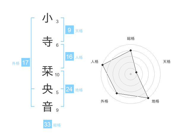 小寺 栞央音さんの総格は33画の4点!