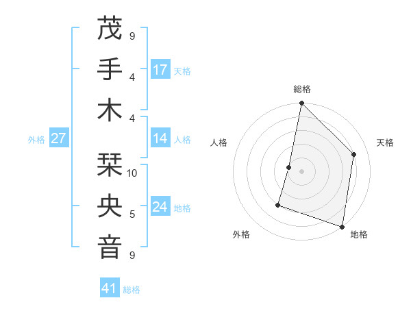 茂手木 栞央音さんの天格は17画の4点!
