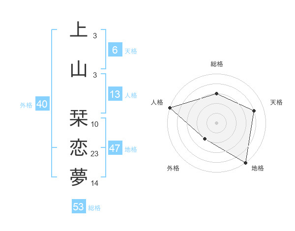 上山 栞恋夢さんを姓名の画数から五運を鑑定