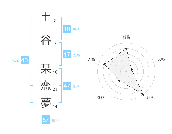 土谷 栞恋夢さんを姓名の画数から五運を鑑定