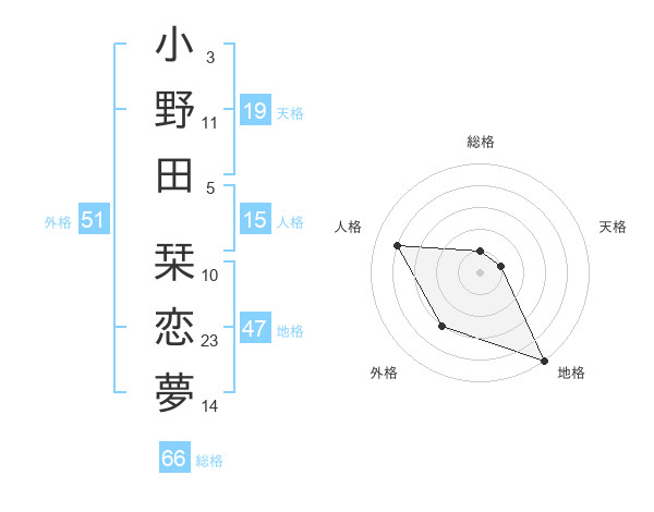 小野田 栞恋夢さんを姓名の画数から五運を鑑定